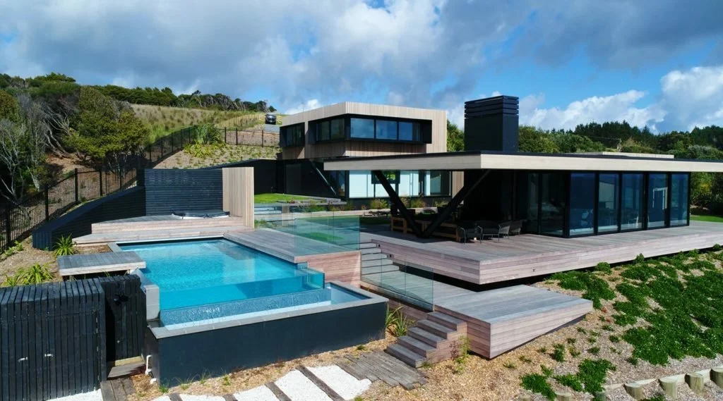 Building a new house and swimming pool can lead to some really great synergies, as is the case with this Matakana infinity pool.